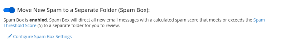 Enabling “Spam Box” will redirect suspected spam to a Spam folder on your email account.